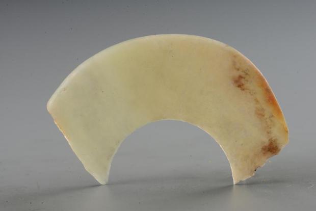 劉家窪芮国遺跡の「M3」墓から出土した玉玦(ぎょくけつ)。(西安=新華社配信)