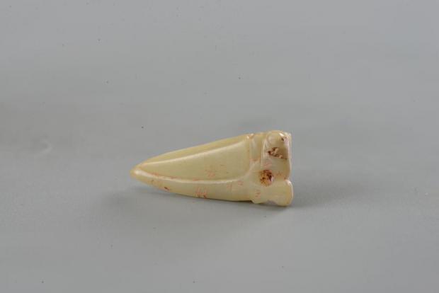 劉家窪芮国遺跡の「M3」墓から出土した玉蝉(ぎょくせん)。(西安=新華社配信)